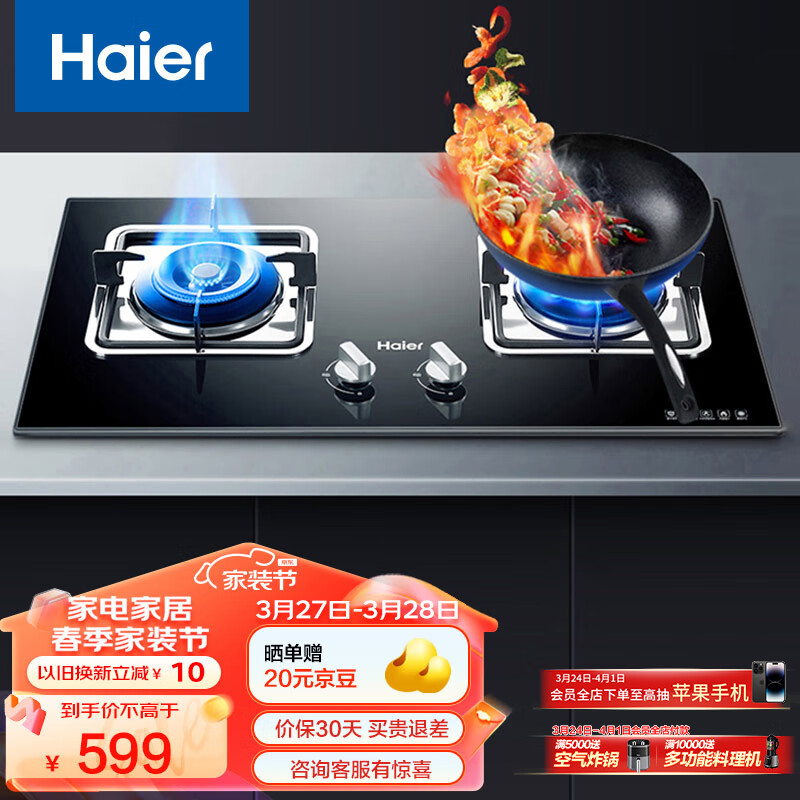 海尔(Haier)燃气灶天然气灶双灶 一级能效 4.5kw聚能火 台嵌两用熄火保护 煤气灶以旧换新QE5B0(天然气)价格:599.00元!
