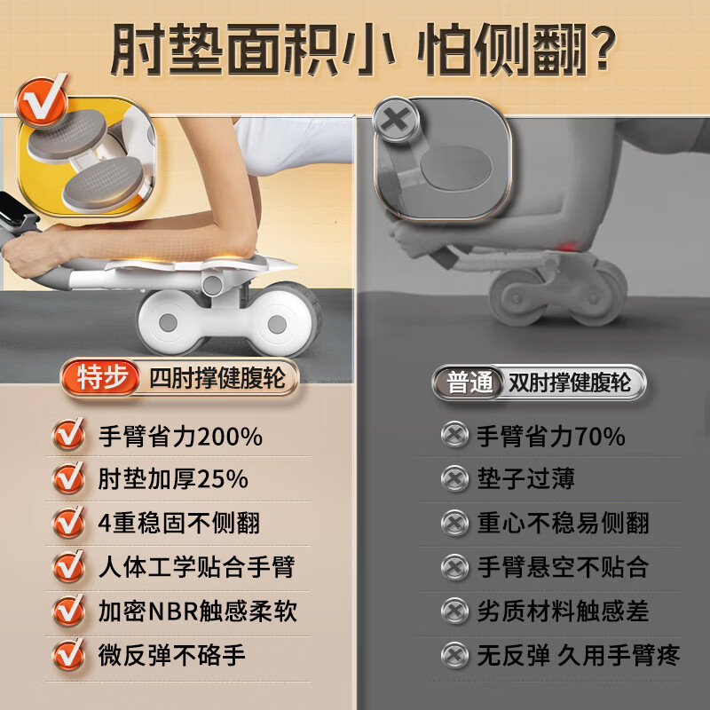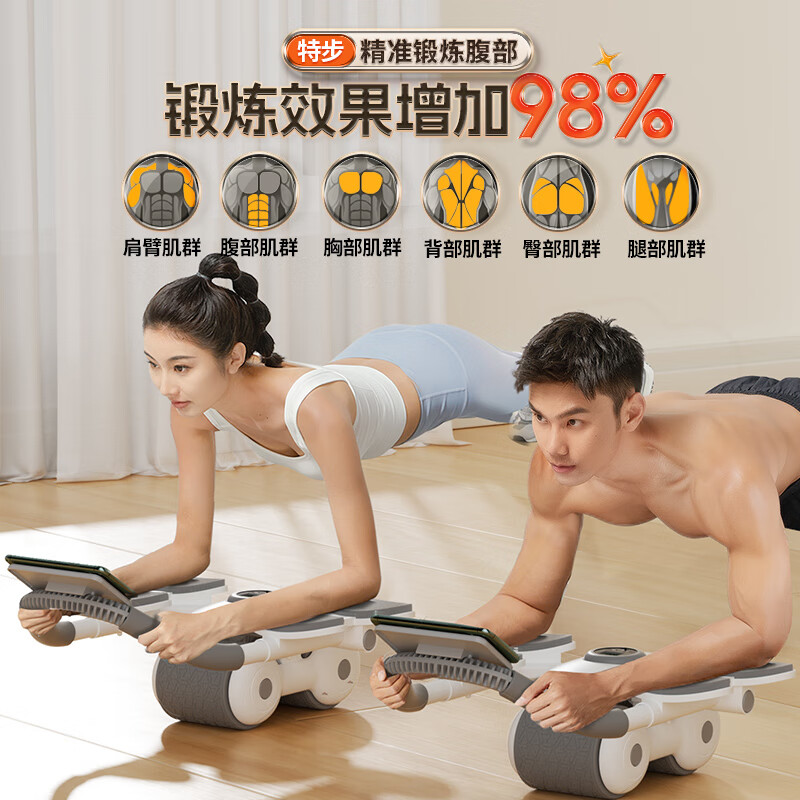 特步(XTEP)健腹轮自动回弹肘撑健身器材平板支撑卷腹男女锻炼腹肌神器减肚子价格:129.00元!