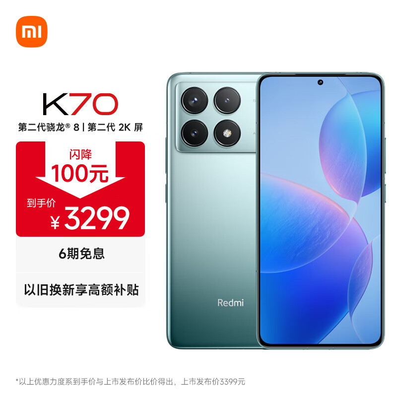 小米Redmi K70 第二代骁龙8 小米澎湃OS 16GB+1T 竹月蓝 红米5G手机 SU7 小米汽车互联价格:3299.00元!