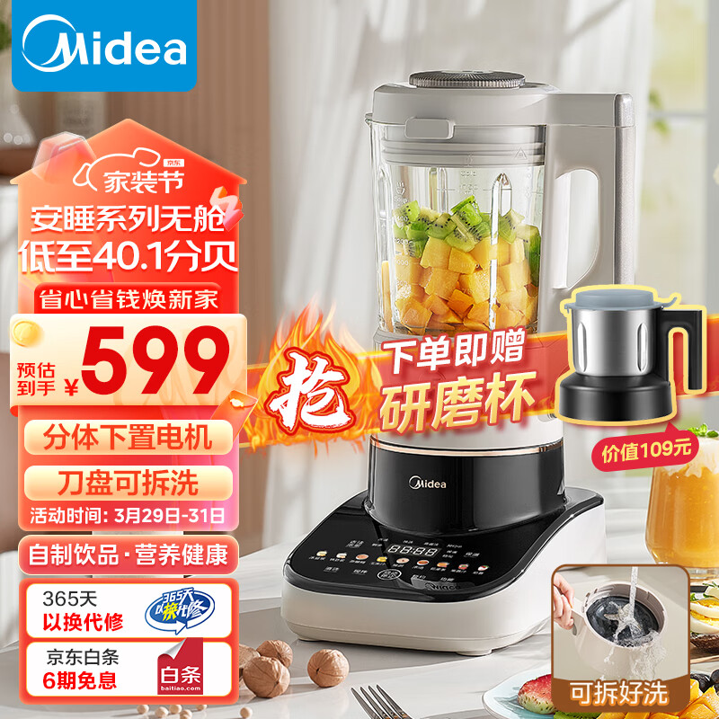 美的(Midea)安睡Max2低音降噪破壁机1.75L大容量家用豆浆机可拆洗榨汁机 全自动加热早餐机辅食机MJ-PB13S59价格:599.00元!