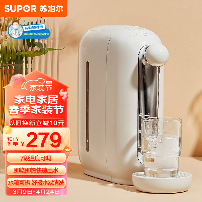苏泊尔(SUPOR)即热电水壶 2.8L 迷你家用台式饮水机 电热水壶恒温烧水壶 饮水器茶水机 SW-JR0201A价格:279.00元!