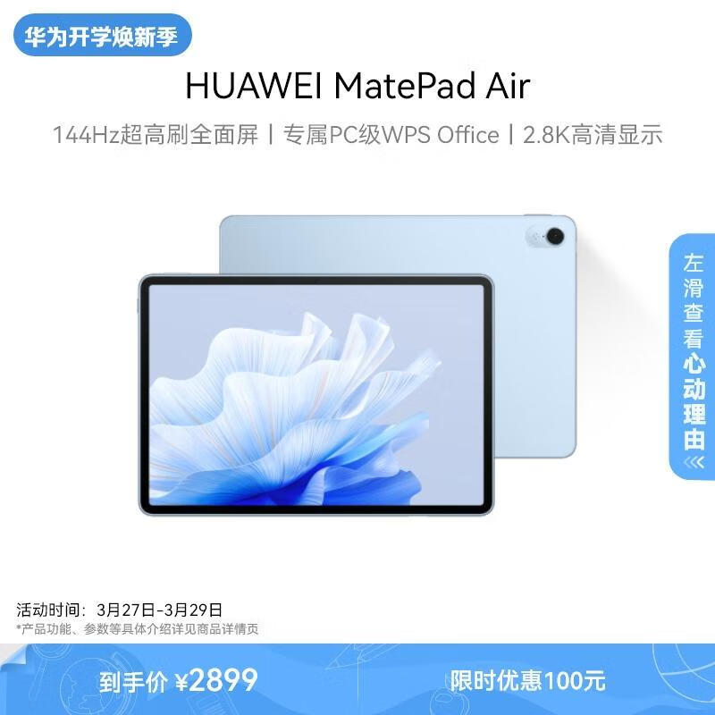 HUAWEI MatePad Air 华为平板电脑11.5英寸144Hz护眼屏2.8K超清办公学习娱乐 8+256GB 星河蓝价格:2899.00元!