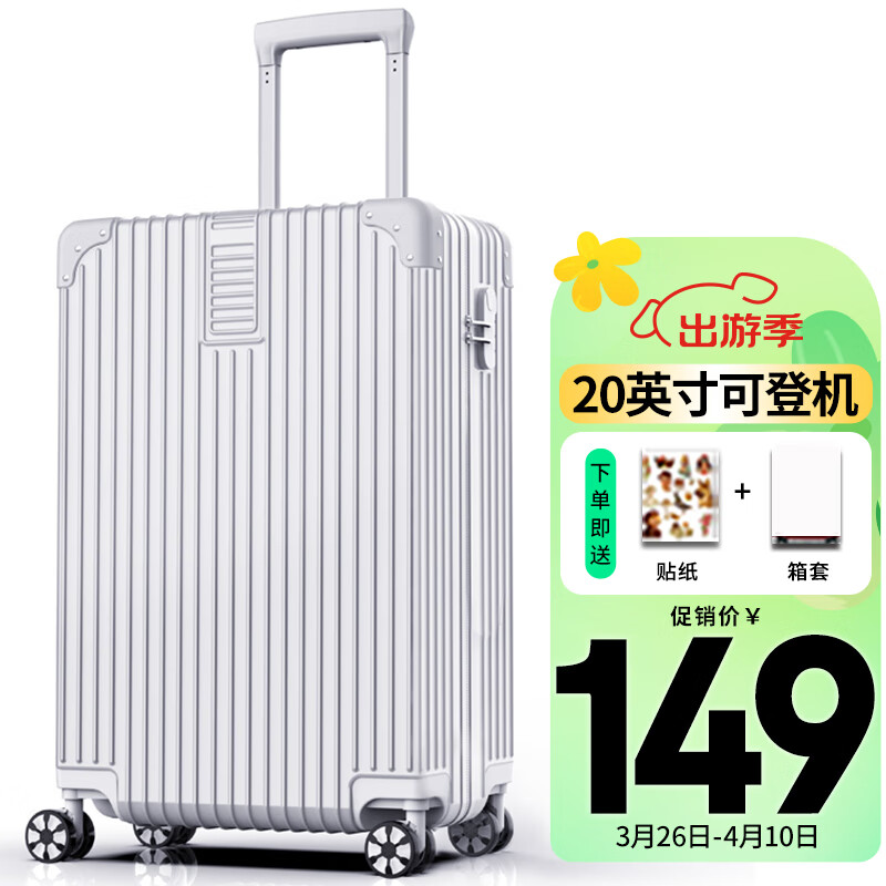 SOO行李箱男学生旅行箱拉杆箱女万向轮 A210密码皮箱子20英寸奢华银价格:149.00元!