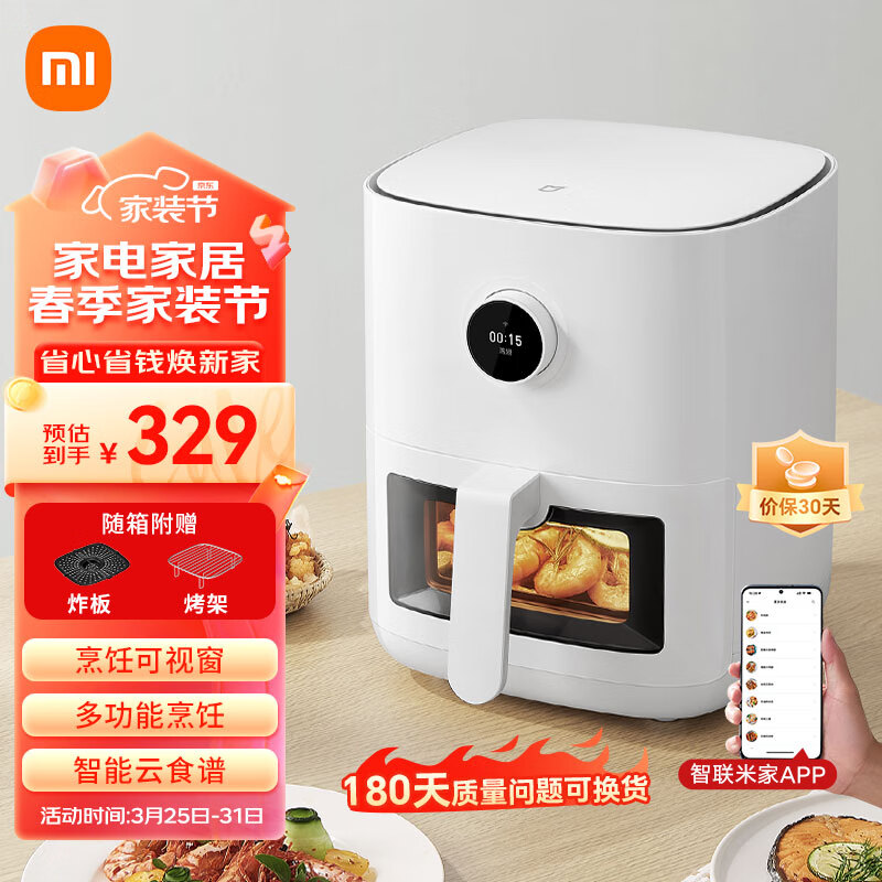 米家小米空气炸锅烤箱一体机电炸锅 可视化窗口 食品级不粘涂层 烤红薯薯条 多功能智能互联Pro 4升价格:329.00元!