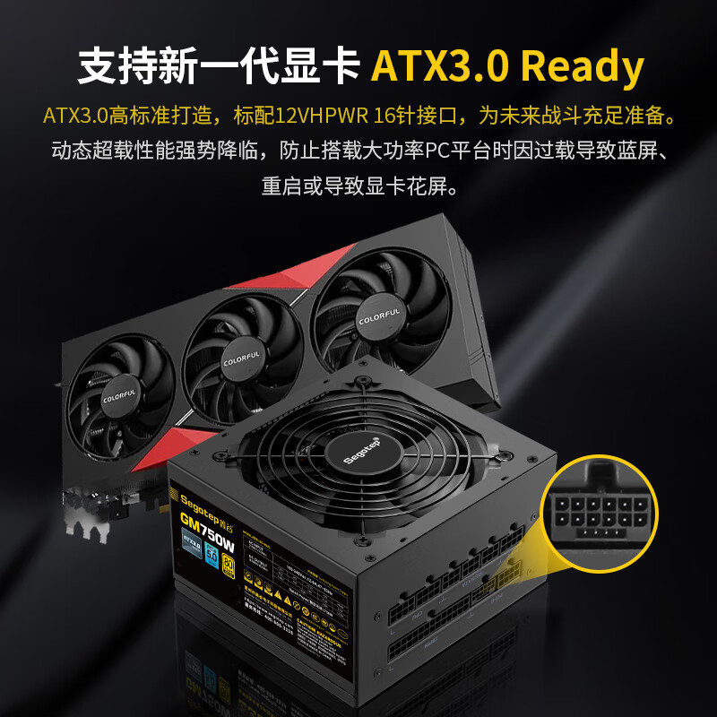 鑫谷(segotep)GM750W ATX3.0电源(原生PCIE5.0/12VHPWR/80plus金牌/全模组设计/台式电脑主机箱电源)价格:419.00元!