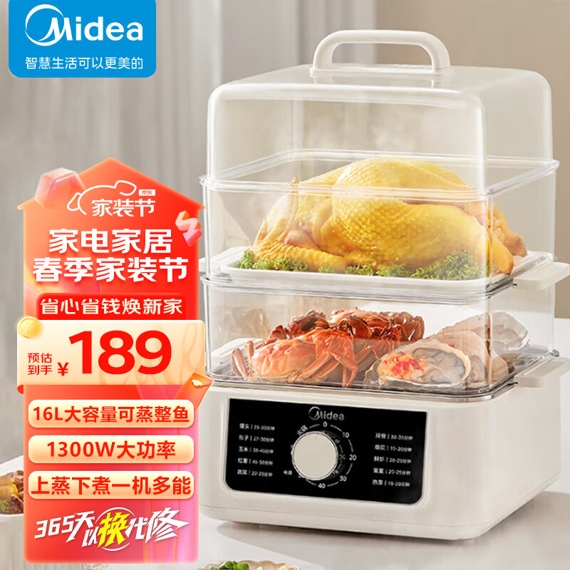 美的(Midea)电蒸锅 电煮锅 电热锅 电炖锅 多功能锅家用蒸包子锅多功能料理锅 透明可视多用途锅 ZGE2522T70价格:189.00元!