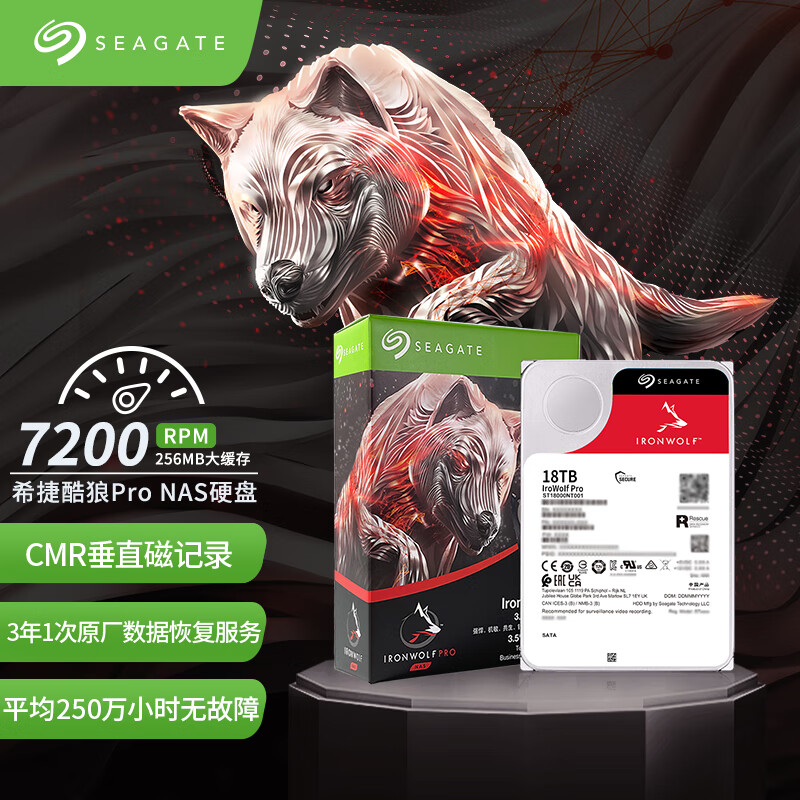 希捷(SEAGATE)NAS硬盘18TB 企业级 256MB 7200转 CMR垂直 SATA 希捷酷狼PRO 机械硬盘 550年负载 数据恢复服务价格:3899.00元!