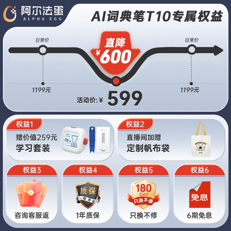 阿尔法蛋AI词典笔T10 英语点读笔神器 翻译笔离线扫描 小学初高中电子词典翻译机价格:599.00元!
