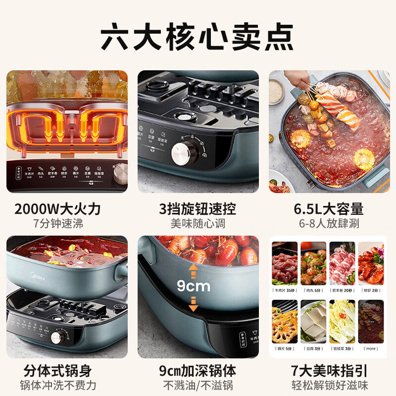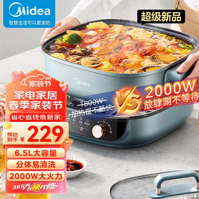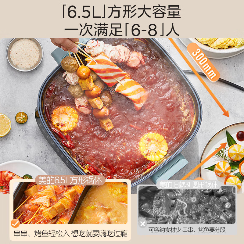 美的(Midea)电火锅 电煮锅火锅专用锅 电锅火锅锅多功能锅分体式家用电热锅电炒锅 6.5L多用途锅 MC-HGS303007价格:229.00元!