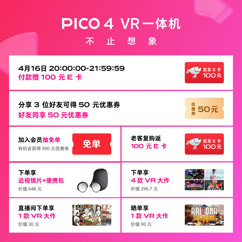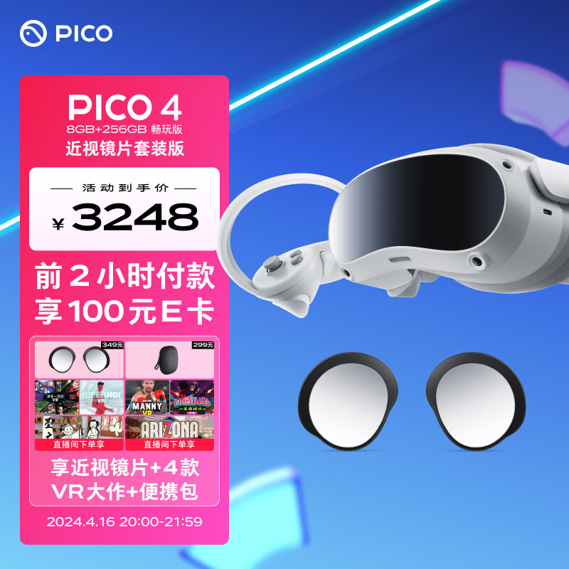 PICO4 VR 一体机 近视镜片套装 8+256G【畅玩版】【依视路镜片】VR智能眼镜 XR设备头显 体感游戏机 AR价格:3398.00元!