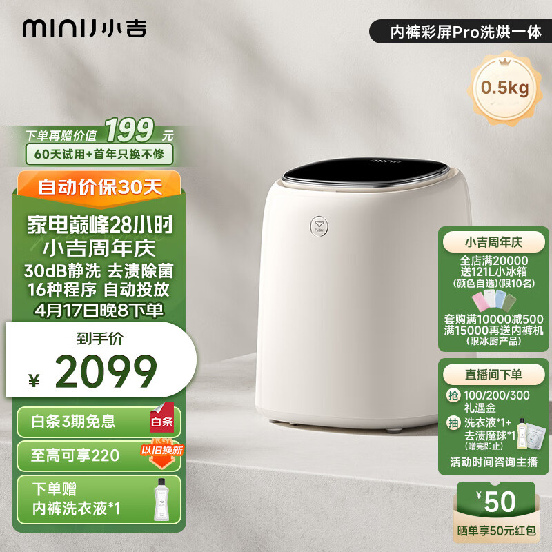 小吉0.5kg内衣洗衣机小型迷你高温煮洗去血渍洗烘一体变频内裤洗衣机U10-MD PRO价格:2099.00元!