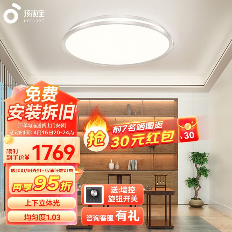 孩视宝护眼吸顶灯客厅大灯卧室书房灯全光谱防蓝光儿童房led灯具AH37-T价格:2579.00元!