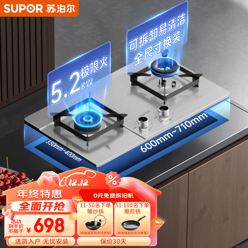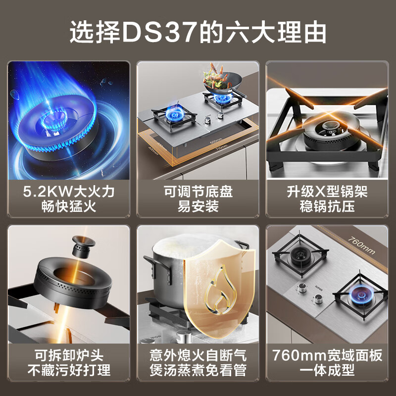 苏泊尔(SUPOR)燃气灶双灶家用 液化气双灶具5.2kW升级猛火 易洁耐用不锈钢面板 台嵌两用灶具 DS37液价格:698.00元!
