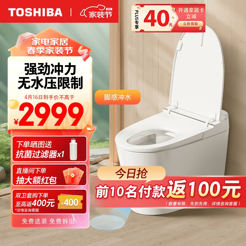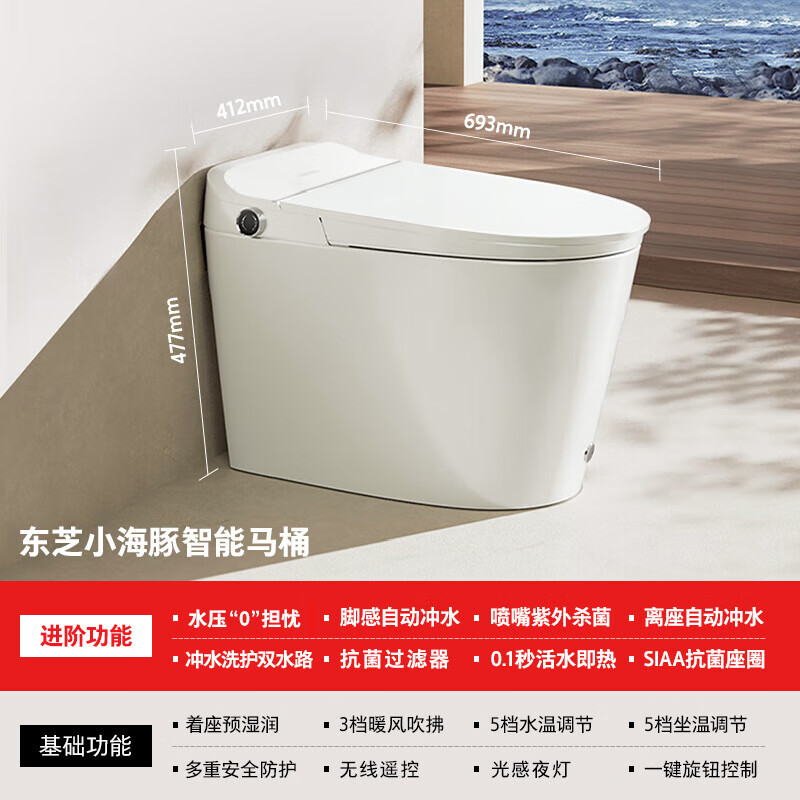 东芝(TOSHIBA)小海豚智能马桶小户型带水箱全功能虹吸式家用电动坐便器A400-305价格:3599.00元!