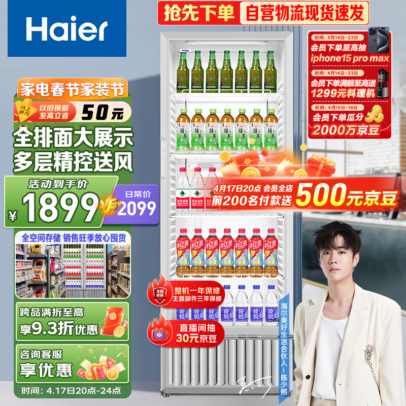 海尔(Haier)320新形象多层风冷全空间不倒水风冷无霜立式展示柜冰柜饮料冷藏柜商用保鲜柜冷柜SC-332以旧换新价格:2099.00元!