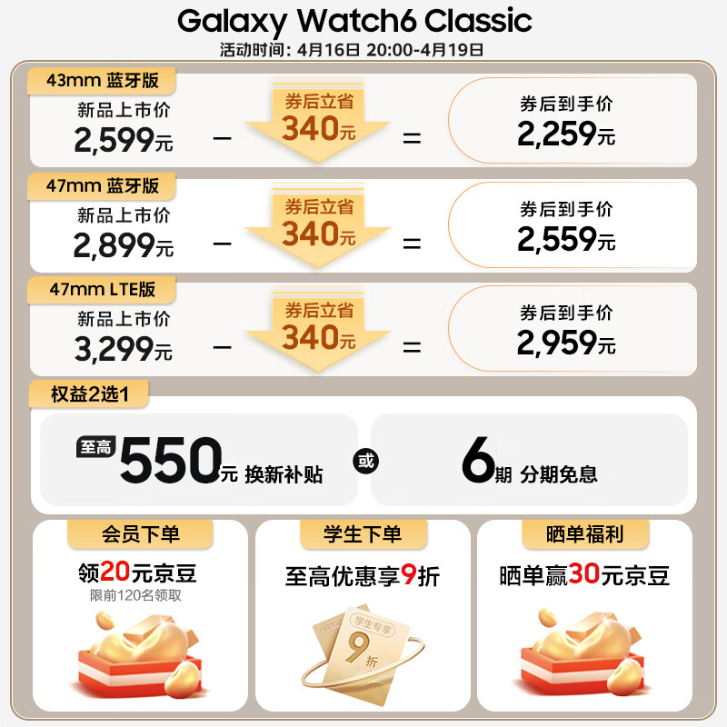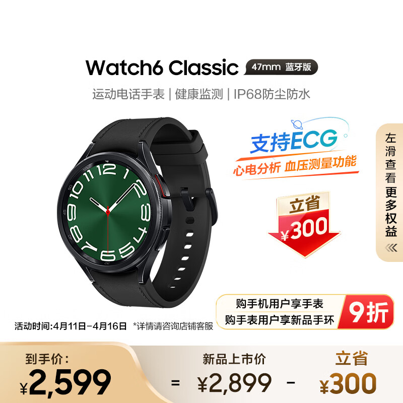 三星Galaxy Watch6 Classic 蓝牙通话/智能手表/运动电话手表/ECG心电分析/血压手表 47mm 宇夜黑价格:2599.00元!