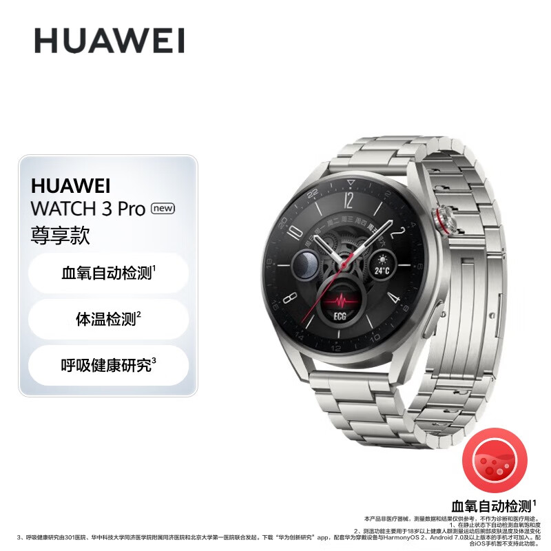 华为HUAWEI WATCH 3 Pro New 尊享款 钛金属表带48mm表盘 华为手表 运动智能手表 eSIM独立通话 鸿蒙系统价格:2199.00元!