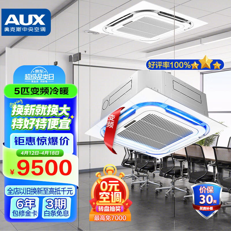 奥克斯(AUX)中央空调5匹变频冷暖天花机嵌入式吸顶机吊顶空调商用天井机380V KFR-120QW/BPR3YC2S(B2)价格:9500.00元!