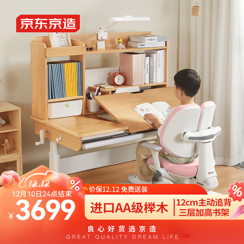 京东京造儿童学习桌椅 儿童书桌椅套装 榉木三层学习桌 写字桌 1.2m粉价格:4399.00元!
