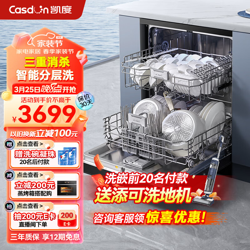凯度(CASDON)嵌入式 全自动家用烘干独立式 一级水效 智能15套洗碗机KD150CQR-J6A价格:3699.00元!