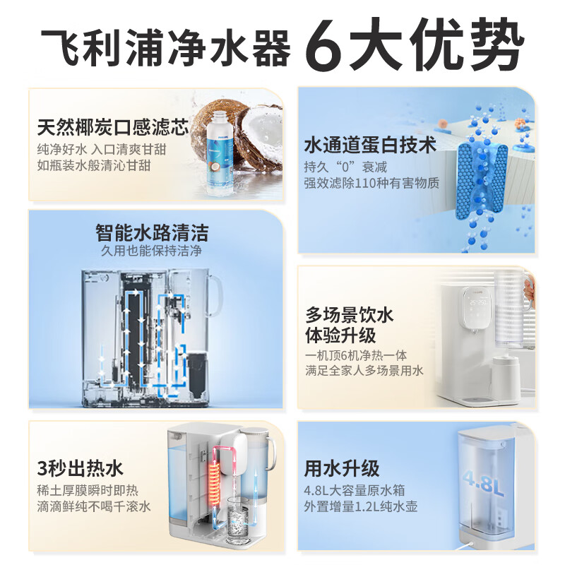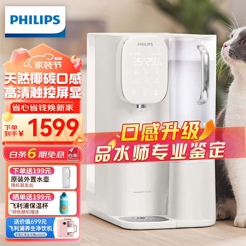飞利浦(PHILIPS)家用RO反渗透台式即热净饮水机净水器加热直饮一体机免安装净水器6850系列ADD6852价格:1599.00元!