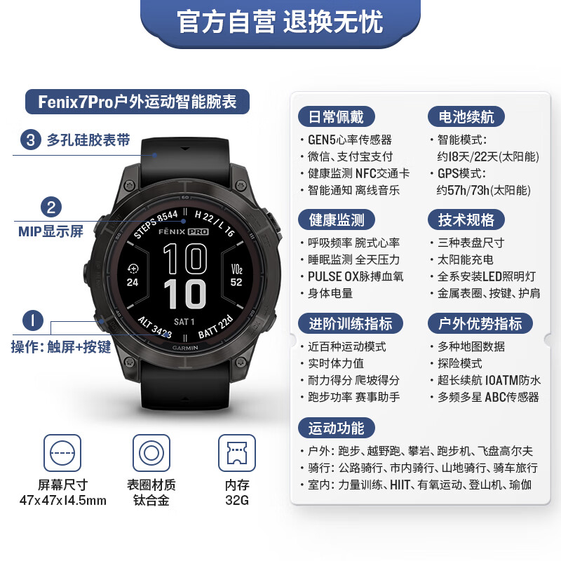 佳明(GARMIN)Fenix7 Pro太阳能足篮拳击格斗飞盘骑马户外运动智能手表旗舰版价格:6480.00元!