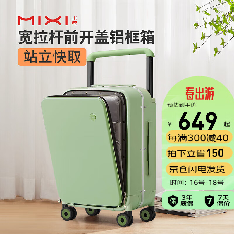 米熙前开盖铝框拉杆箱子行李箱大容量密码箱女旅行箱24英寸牛油果绿75价格:799.00元!