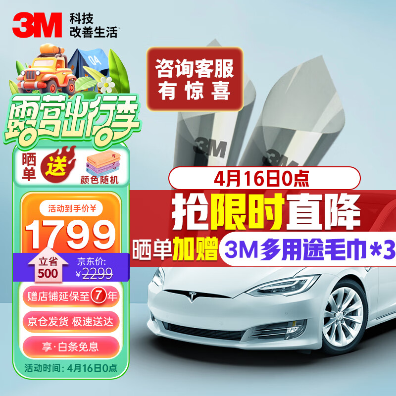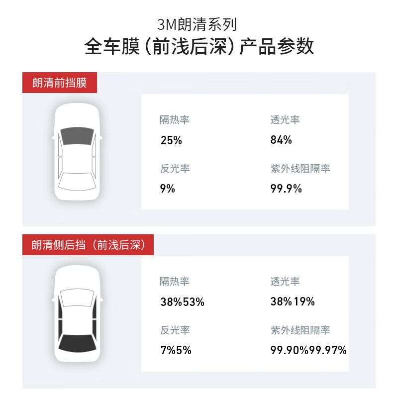 3M汽车贴膜 朗清系列 定制前浅后深新能源特斯拉玻璃车膜太阳隔热窗膜 包施工 国际品牌价格:2299.00元!