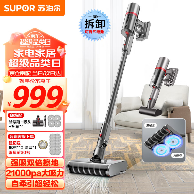 苏泊尔(SUPOR )手持无线吸尘器家用洗地机吸拖一体全自动大吸力拖地机电动拖把宠物家庭适用EVS-C12价格:999.00元!