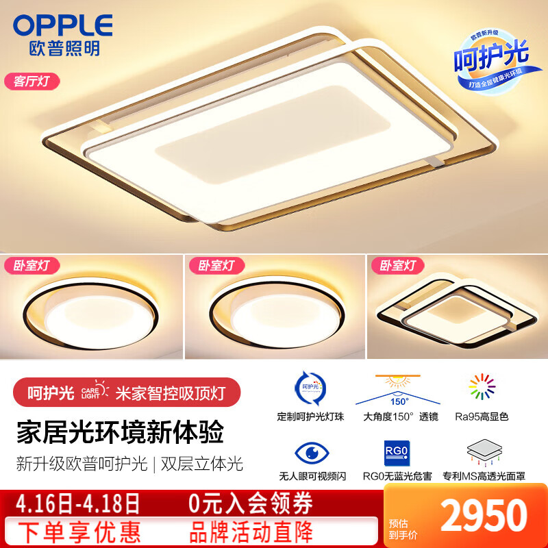 欧普照明(OPPLE) 吸顶灯客厅大灯米家智控LED照明灯具套餐5呵护光价格:2950.00元!