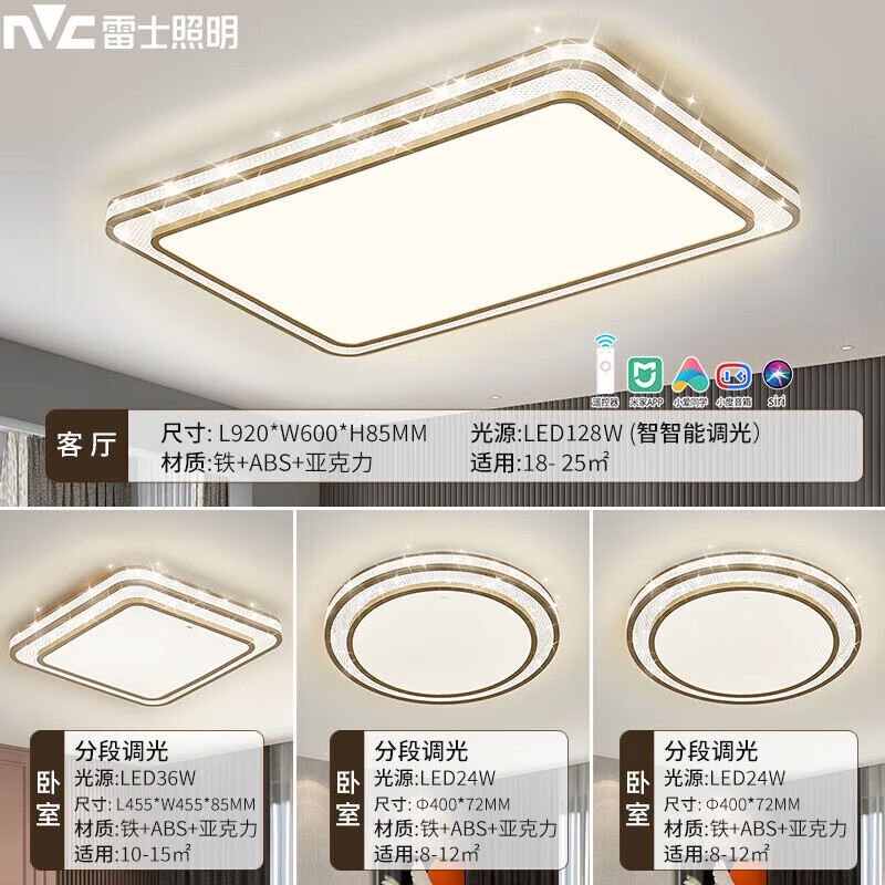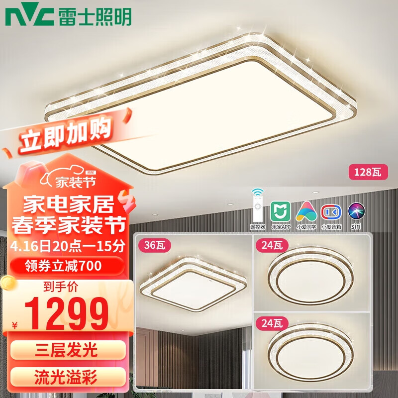雷士照明(NVC)LED吸顶轻奢客厅书房卧室餐厅灯智控双层发光晶宏三室一厅价格:1999.00元!