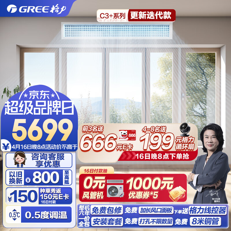 格力(GREE)中央空调 FJ风管机一拖一 大1匹家用嵌入式空调 一级能效 FJR2.6Pd/Cb3Nh-N1京仓派送(一价全包)价格:5699.00元!