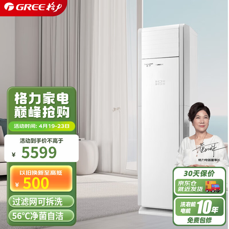 格力(GREE)2匹 京爽 新三级能效 变频冷暖 高温自清洁 立柜式空调柜机 KFR-50LW/(50533)FNhAs-B3价格:5599.00元!