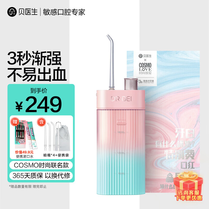 贝医生(DR·BEI) 正畸冲牙器便携家用洗牙器洁牙器水牙线清洁口腔牙套 国货旅行洗漱套装 清洁亮白护龈 送女友礼物 F3s Cosmo联名·樱雪晴空 4支喷头价格:399.00元!