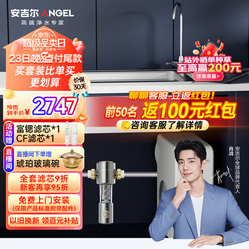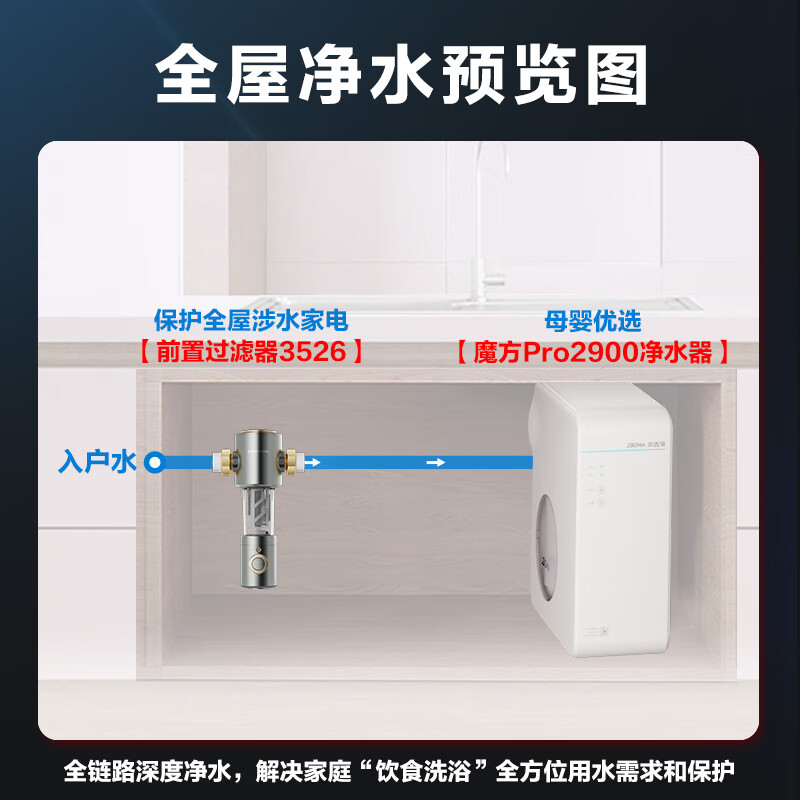 安吉尔净水器家用过滤器套装【魔方pro2900+前置过滤器3526】5年RO反渗透厨下式直饮机1100G体验价格:2747.00元!