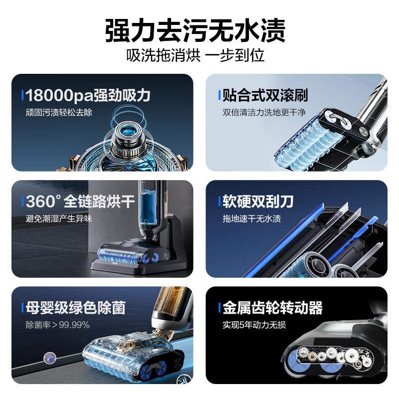 海尔海尔Haier无线智能洗地机吸拖一体全自动X11拖地机双滚刷双动力配置参数: