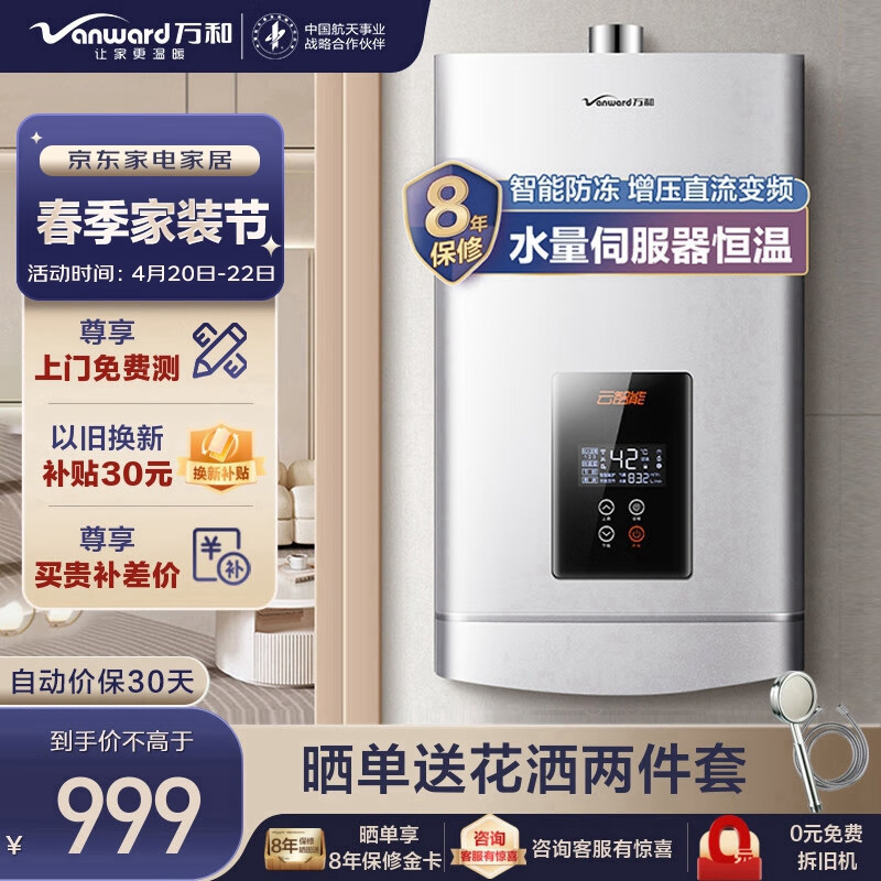 万和(Vanward)13升燃气热水器京东小家智能生态天然气智能防冻 直流变频 增压水量伺服器恒温 JSQ25-560J13价格:1149.00元!
