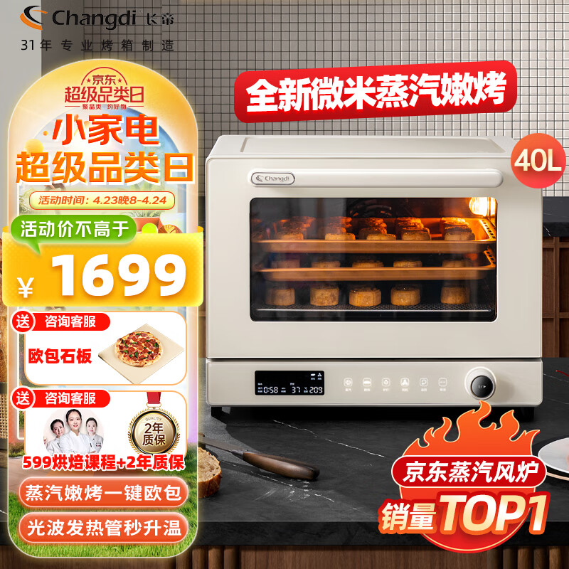 长帝(changdi)家用风炉电烤箱 40升多功能风炉平炉一体机 蒸汽嫩烤 多层同烤 一键欧包功能 S1蒸汽风炉烤箱价格:1749.00元!
