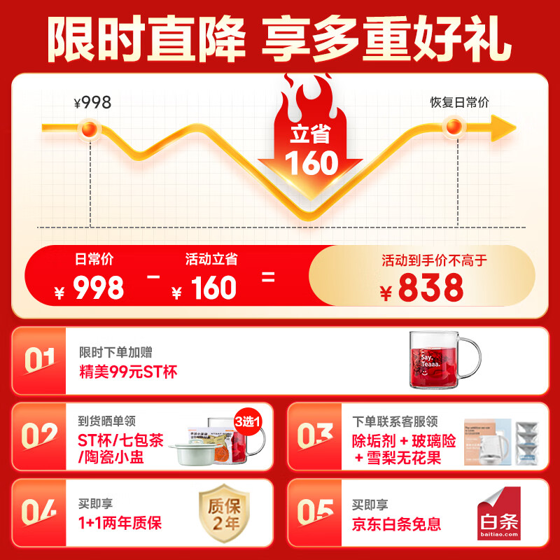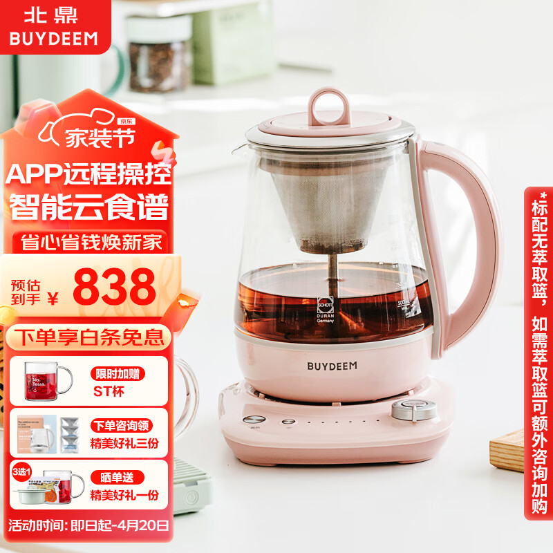 北鼎(Buydeem)智能养生壶烧水壶 家用电热水壶多功能煮茶器恒温热水壶智能APP互联 Smart K单壶猪猪粉价格:838.00元!