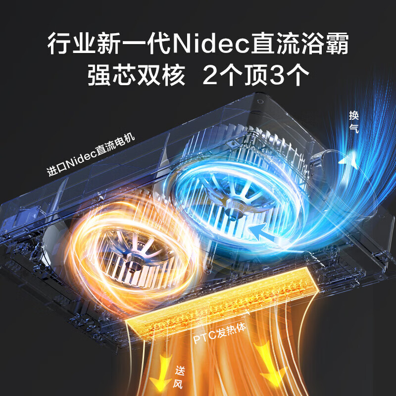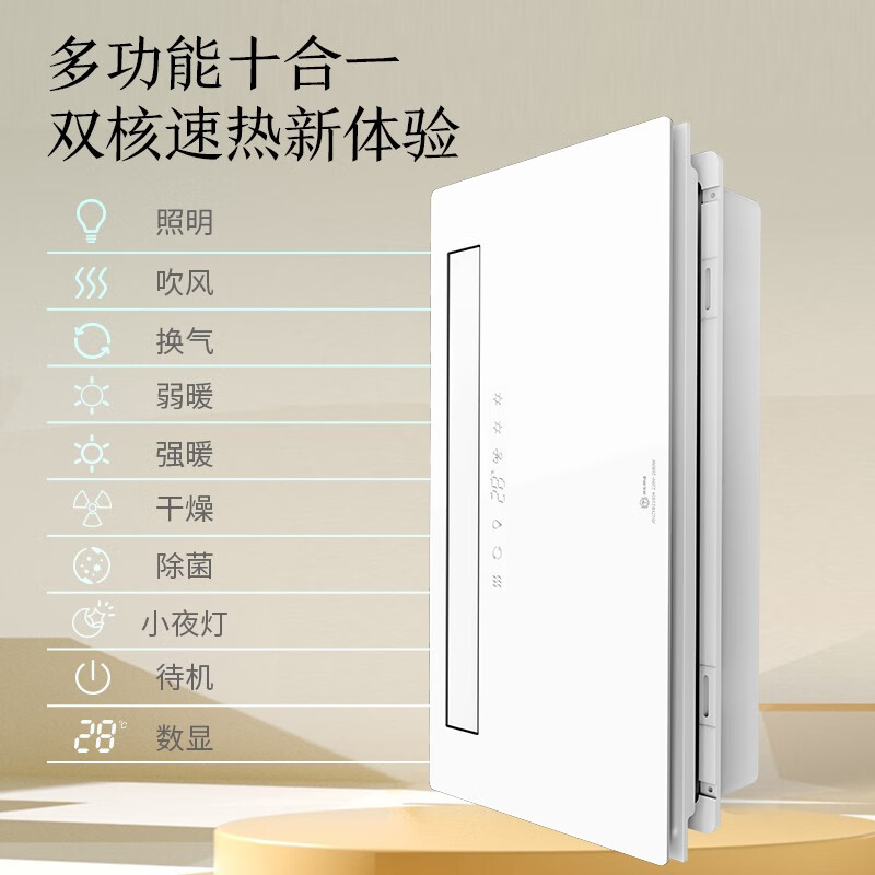 京东京造浴霸 大功率风暖照明排换气十合一 浴室卫生间 双电机Nidec暖风机价格:699.00元!