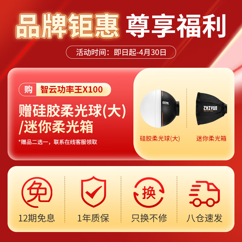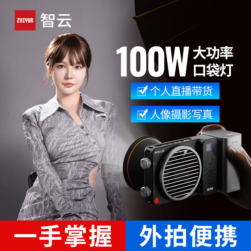 zhi yun智云功率王 X100便携直播补光灯美颜拍照摄影影棚灯室内室外人像拍摄灯100W COB口袋灯X100价格:1379.00元!
