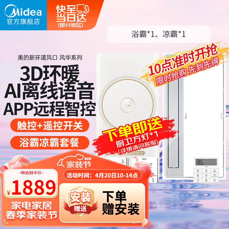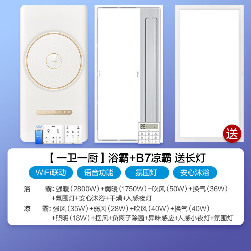 美的(Midea)浴霸风暖集卫生间成吊顶暖风机浴室智能环形双电机语音双控取暖器价格:1889.00元!