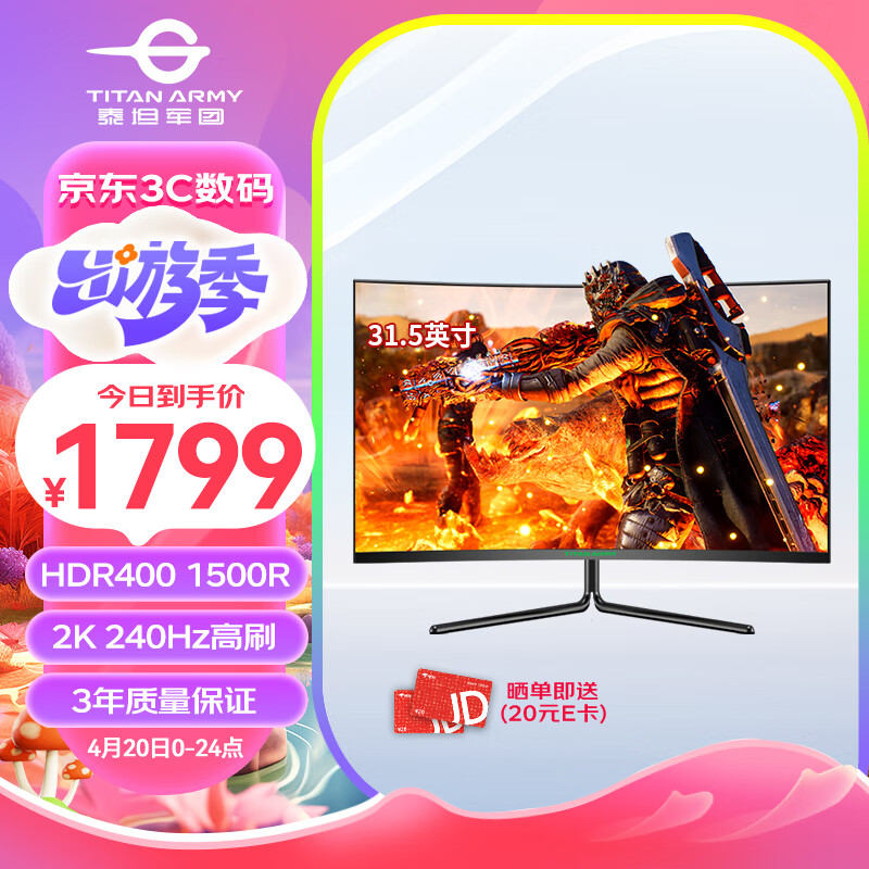 泰坦军团31.5英寸2K 240Hz曲面显示器 HDR400广色域 电竞HVA 1500R精妙曲率 A-Sync技术 电脑显示屏 C32C1S价格:1999.00元!