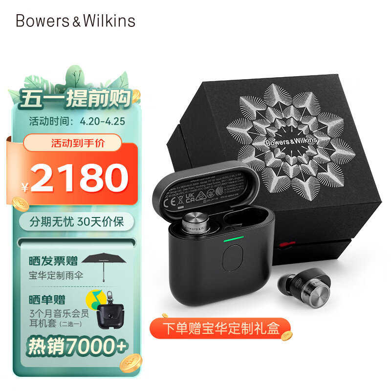 宝华韦健(B&W) Pi7二代礼盒版 真无线主动降噪HIFI运动蓝牙耳机 Bowers&Wilkins音乐入耳式Pi7s2 苍墨黑价格:2580.00元!