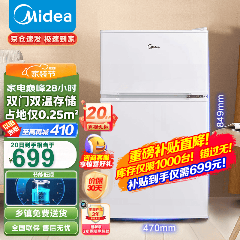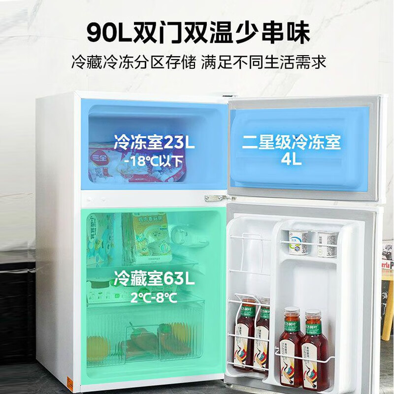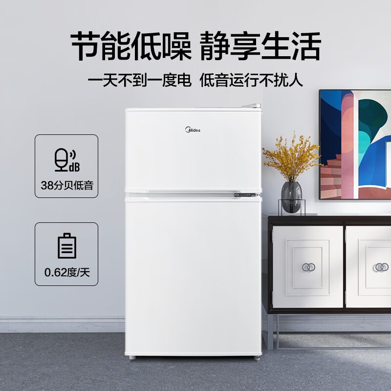 美的(Midea)90升迷你双开门小冰箱租房宿舍办公室小型家用双温可冷冻冷藏节能环保省电低耗低音 BCD-90CM价格:698.00元!