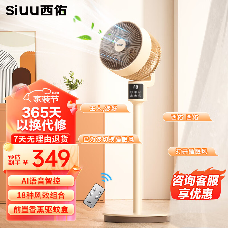 西佑空气循环扇/大风量落地扇/可拆洗电风扇/宿舍卧室空调伴侣/3D摇头轻音对流换气扇/语音遥控款价格:421.10元!