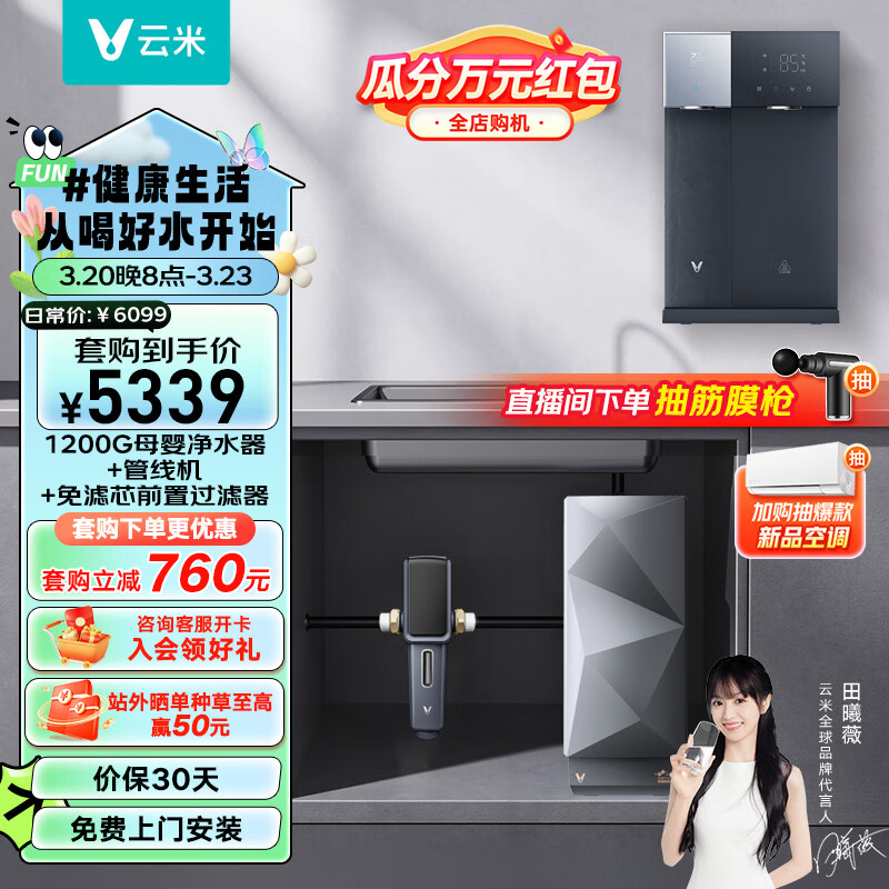 云米(VIOMI)Super 2 1200G全屋净水套装净水器+冷热管线机Master 3+前置过滤器VF4三件套家用加热净水器净水机价格:6099.00元!