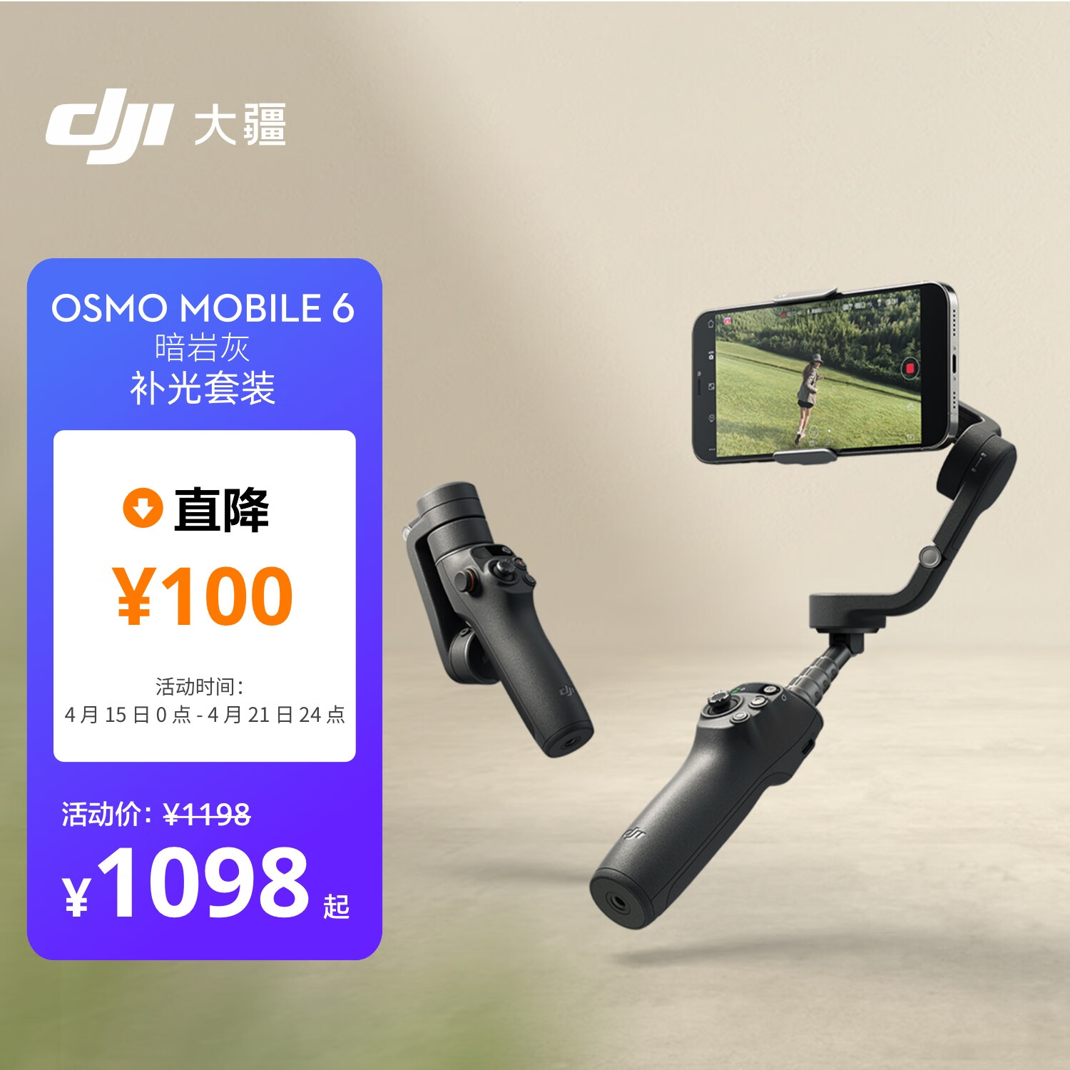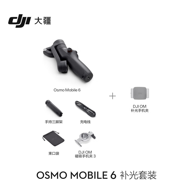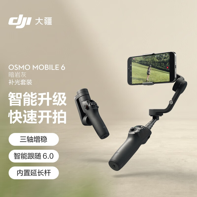 大疆 DJI Osmo Mobile 6?暗岩灰?补光套装 OM手机云台稳定器可伸缩自拍杆 三轴增稳防抖vlog手持稳定器价格:1098.00元!