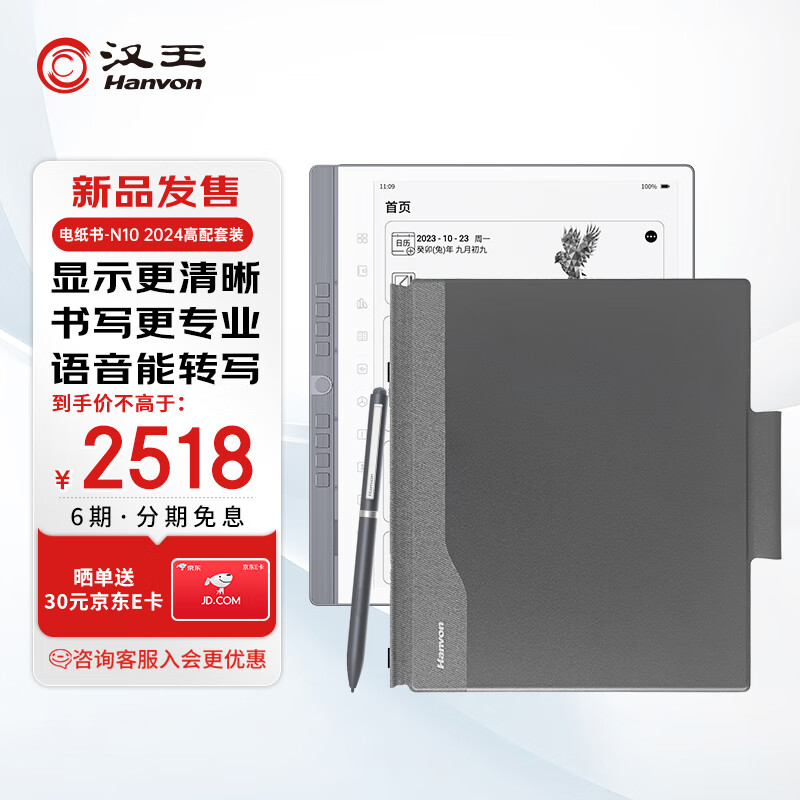 汉王(Hanvon)【张新成同款】N102024手写电纸本10.3英寸电子书阅读器墨水屏电纸书电子笔记本智能办公本 套装价格:2618.00元!