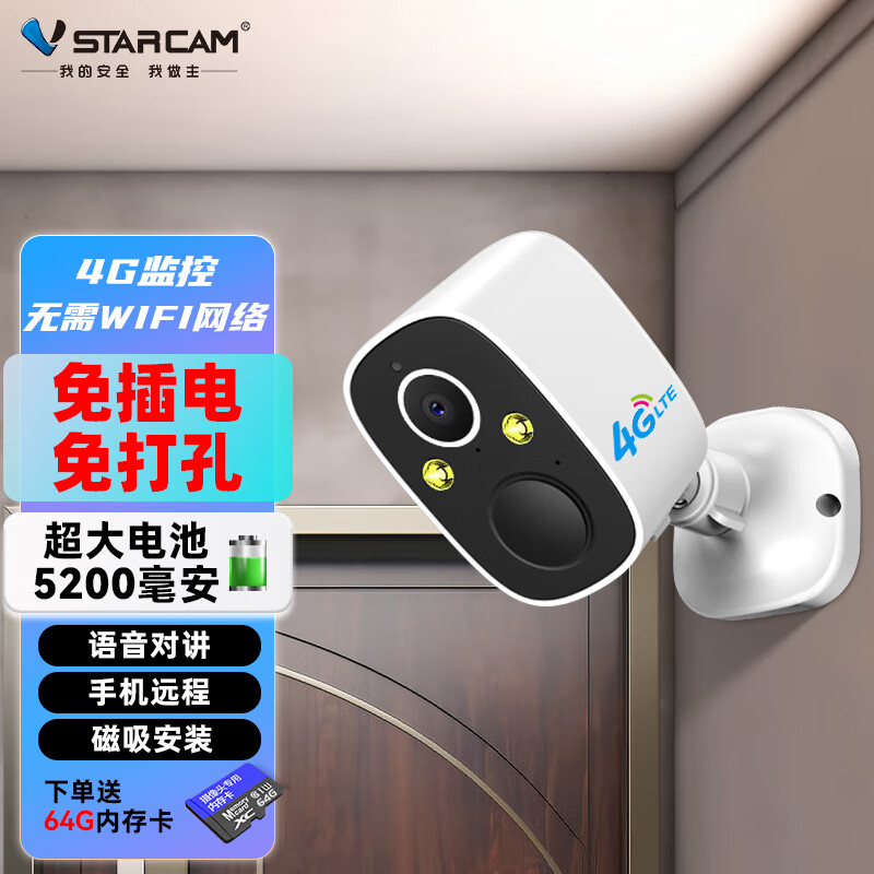 威视达康4g门口监控器摄像头充电池款家用不插电免插卡监控无线摄像头无需连wifi室外入户门无电无网络可用价格:269.00元!